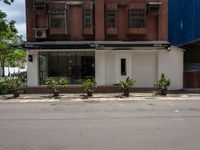 A view of daily life in Taipei city, Taiwan, with modern architecture, infrastructure, residential property, and a zebra crossing in the foreground. The sky is filled with clouds and the asphalt road surface is lined with storefronts, street lights, and traffic lights.