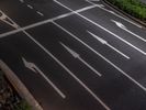 A top down view of the city of Tokyo, Japan, illuminated by artificial light, with motion blur and light streaks from the elevated road and street lights.