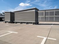A composite view of a residential area in Berlin, featuring a mix of cobble stone, asphalt, wood, concrete, and metal materials. The scene includes a parking deck, house, office building, parking garage, and public open space. A cloudy day sky casts a shade over the urban design and city life.