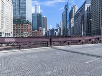 A bustling cityscape with modern architecture and skyscrapers in downtown Chicago, Illinois, USA.
