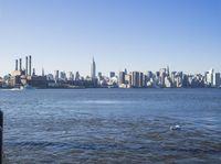 A panoramic view of the iconic New York City skyline, featuring towering skyscrapers and architectural marvels overlooking the Hudson River.