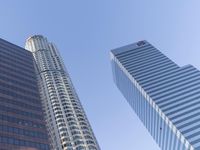 A stunning view of a high-rise skyscraper in a bustling urban metropolis on a clear day.