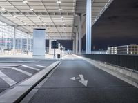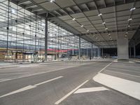 A view of a modern urban nightscape in Berlin, Germany, with a highway, buildings, parking lots, and a train station illuminated by artificial light.