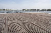 A beautiful urban park in Shanghai, China with open spaces, walkways, and a wooden floor.