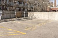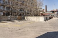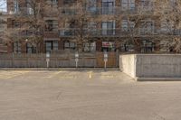 A view of a busy parking lot in the bustling city of Toronto, Ontario, Canada. The asphalt surface is lined with vehicles and surrounded by lush green grass. The lot is adjacent to a modern building with large windows and a sleek facade. The concrete road leads to the entrance, and a brick fence separates the lot from the adjacent sidewalk. The clear sky casts hard shadows, creating an urban scene.