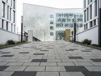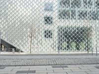A modern cityscape of Berlin, Germany, featuring various elements of urban design, including architecture, trees, lane dividers, and wire fencing. The cityscape shows the metropolitan area, residential area, public open space, and the headquarters of various businesses.