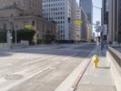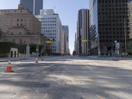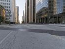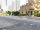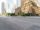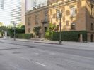 A yellow facade of a house amidst an urban neighborhood, with a downtown skyline and transport infrastructure in the background, on a clear day with a cloudy sky.