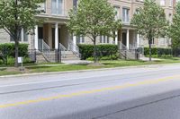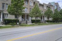 Aerial view of a suburban neighborhood in Toronto, Canada with residential buildings and homes surrounded by trees and yellow autumn foliage. The city's infrastructure, including roads, lanes, and sidewalks, can be seen, creating a vibrant and livable community.