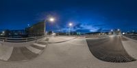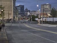 A view of a classic architecture cityscape in a residential area of the metropolitan city of Chicago, Illinois. Light from a street lamp shines down upon the asphalt roadway in the dark of night, while a single cloud drifts through the sky above.