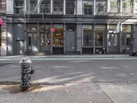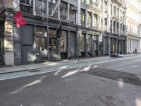 A typical urban scene in Manhattan, New York, USA, featuring classic architecture, shops, vehicles, asphalt roads, and other elements of urban infrastructure.