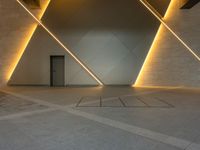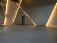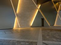 The modern urban design of the Tokyo shopping mall, illuminated by artificial light during the daytime, is seen from a paver's surface.