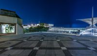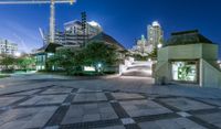 The modern architecture of Milwaukee, Wisconsin at night, with its high-rise buildings, illuminated by artificial light, and its open space and paved surfaces, against a clear night sky, creating a stunning cityscape.