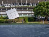 A view of a gravel surface and urban design in Tokyo, Japan on a cloudy day.