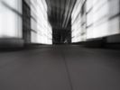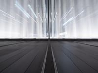 The city of New York is illuminated by a unique blend of artificial and natural light in this nighttime shot, with symmetry between the concrete, glass, and wood elements of the architecture and the straight road that seems to run endlessly down the middle.
