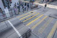 A snapshot of an elevated road in Hong Kong, China. The high-rise buildings, bustling crowd, and vibrant street art reflect the urban design of this metropolitan area.