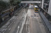 A view of the bustling city of Hong Kong with its iconic elevated road and public transportation infrastructure.