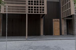 A view of the cityscape of Abu Dhabi, United Arab Emirates, showcasing the contrast between modern architecture and urban elements such as concrete, asphalt, wood, tile, and cobblestone surfaces.