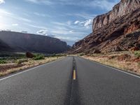 As the sun rises over the majestic Colorado River, the landscape of Utah's canyons comes to life. A straight road stretches into the distance, cutting through the rugged terrain. The asphalt glistens in the early morning light, guiding travelers on their journey. Clouds hang low in the sky, adding drama to the panoramic view. This natural wonder, located in the heart of the USA, is a paradise for nature enthusiasts seeking adventure and awe-inspiring sights.