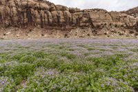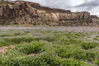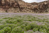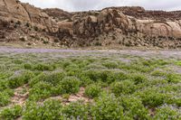 Scenic view of red rock mountains and open grassy spaces in the rugged wilderness of Utah's Canyonlands National Park