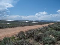 In the heart of Utah's breathtaking landscape, a winding road cuts through the rural countryside. This off-road track takes you on a journey through nature's wonders, with stunning views of lakes and waterways. The road is a mix of dirt, gravel, and sand, adding to the rugged charm of the surroundings. Against the backdrop of clear blue skies and fluffy white clouds, this road offers a unique profile for adventurous travelers seeking to explore the beauty of the USA's natural wonders.