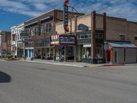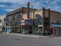 In a small town in Utah, classic architecture blends with urban design. The road stretches into the distance, lined with storefronts and shops. The hard shadows cast by the buildings create a striking contrast against the bright day. As you walk along the road, you can't help but notice the charming profile of the town against the backdrop of the clouds. This rural setting captures the essence of small-town America, offering a glimpse into the unique charm and architecture of Utah.