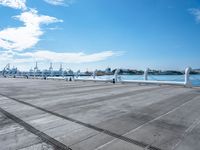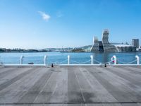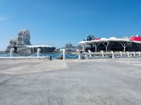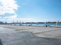 A top down view of Kaohsiung, Taiwan, showing the harbor, a river, a concrete wall, a jetty, and some urban design. The clear sky and dirt surface of the coastal city can be seen from the elevated view.
