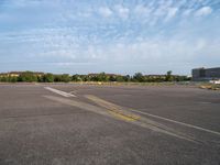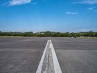 A view of the city of Berlin, Germany, with the Tempelhof airfield and an automotive tire in the foreground, against a backdrop of a clear sky, cumulus clouds, and the horizon. The cityscape is dotted with landmarks, roads, infrastructure, and nature, giving a glimpse of urban life in Europe.