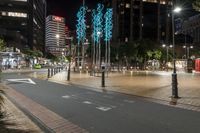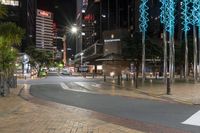 A stunning night view of Wellington cityscape with modern architecture and neon lights illuminating the urban streets.
