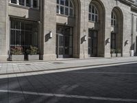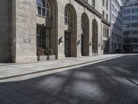 A classic architecture with white facade, symmetry, and monochrome property, make up the downtown area of Berlin, Germany. Tourists can shop, eat out, and explore the metropolitan area via various modes of transport. The yellow arch, arcades, and columns, form a beautiful cityscape with Friedrighstraße straight down the road. The shadow on the road surface hints at the urban design of the neighborhood, while the trees provide a glimpse of city life.