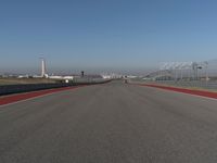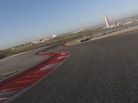 Racing down the winding highway, the asphalt curves around the sea, stretching out across the coastal plain into the horizon. The dawn sky is clear and the infrastructure is in place, leading straight down the road and around the switchback. Automobiles race around the track, while the grandstand overlooks the S-curve and the runway in the distance.