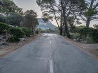The winding asphalt road stretches down the mountain and on to the horizon, surrounded by the natural landscape of Mallorca in the Balearic Islands, Spain. The clear blue sky of Europe highlights the view.