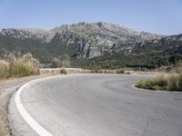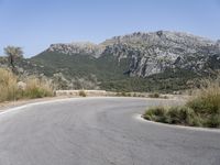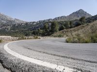 A winding road climbs through the picturesque highlands of Mallorca, Spain, surrounded by lush forests and rugged mountain landforms. The asphalt thoroughfare is bounded by an Armco barrier, providing drivers a safe journey through the wilderness of the Balearic Islands.