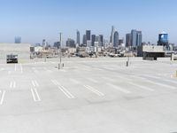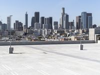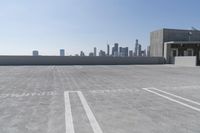 A view of a Brutalist architecture building in a metropolis cityscape with a cold winter atmosphere. The asphalt street is lined with street lights and the skyline is illuminated by the dawn sky, with a river and a window of a corporate headquarters in the background.