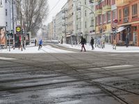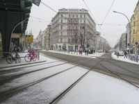 there is snow all over the street in the city of prague and this picture can be seen in europe