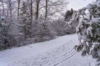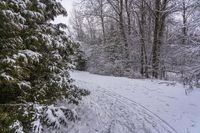 A gloomy winter morning in Ontario, Canada. The grey sky casts a shadow over the snow-covered forest. A road winds through the evergreen trees, leading to Toronto in the distance.