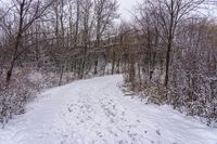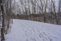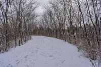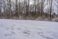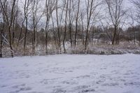 A gloomy winter morning in Ontario, Canada, with a grey sky and snow-covered landscape.
