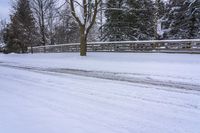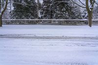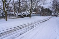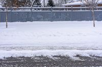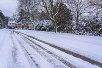 A gloomy winter morning in Toronto, Ontario, Canada. The residential area covered in snow with a straight road leading through the neighborhood.