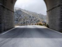 A fast drive along a frozen highway in the Balearic Islands of Spain, passing through a mountain range, past a guard rail along a curved and elevated road with a view of a bay, a pier, and a reservoir in the distance. An aerial overview of the historic architecture and infrastructure.