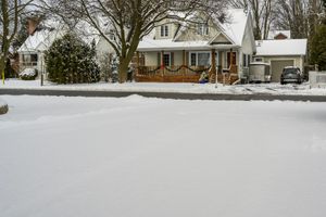 Winter scene in Canada with snow-covered landscape and residential area