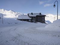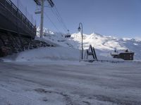 A tourist enjoys the stunning winter landscape of the French Alps, with its snow-covered mountain ranges, glaciers, and gondola rides. The clear sky provides a perfect backdrop to the breathtaking natural terrain and recreation areas, like the ski piste, glacial slope and S-curve bridge. An unforgettable experience in a freezing yet beautiful part of Europe.